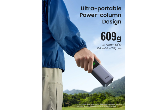 ta prenosni polnilnik ima napredno zasnovo stebra in ima ožjo širino in manjšo velikost od tradicionalnih napajalnikov z visoko zmogljivostjo in močjo. Enostavno ga postavite v ročni kovček ali osebno aktovko, kar zmanjša zasedenost prostora.