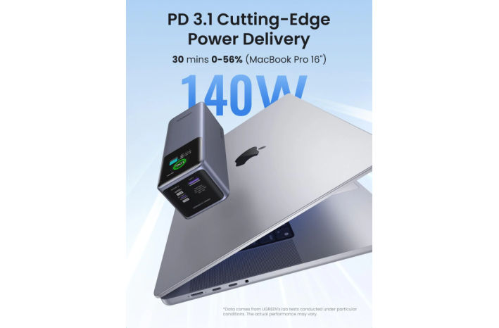 z najnovejšo tehnologijo PD 3.1 ta napajalnik s hitrim polnjenjem omogoča polnjenje vaših naprav s polno hitrostjo, MacBook Pro 16'' lahko napolnite do 56 % v samo 30 minutah. Največja skupna moč 200 W, dvojna moč 100 W lahko hitro napaja dva prenosnika hkrati.