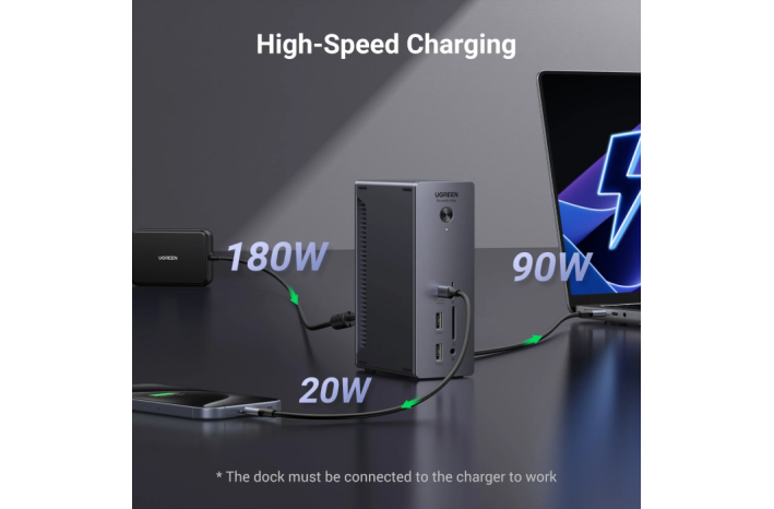 napolnite svoj prenosnik do 90 W med delom s priloženim polnilnikom GaN.