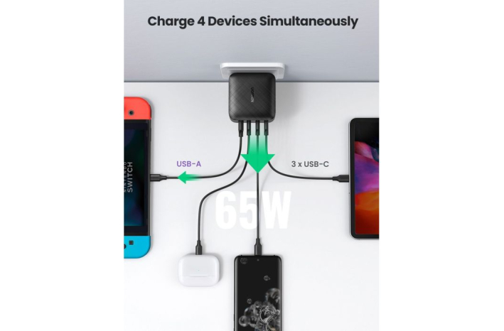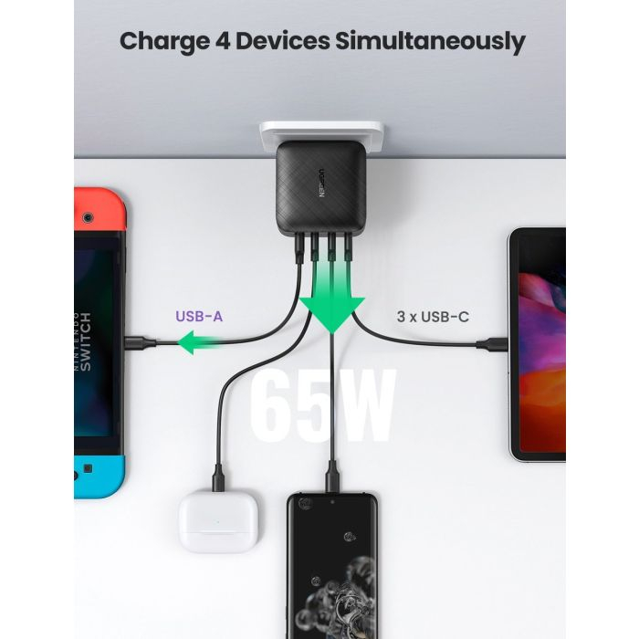 Ugreen USB-A in 3xUSB-C 65W GaN hitri polnilec