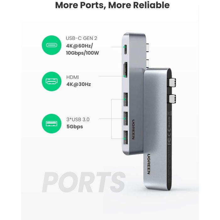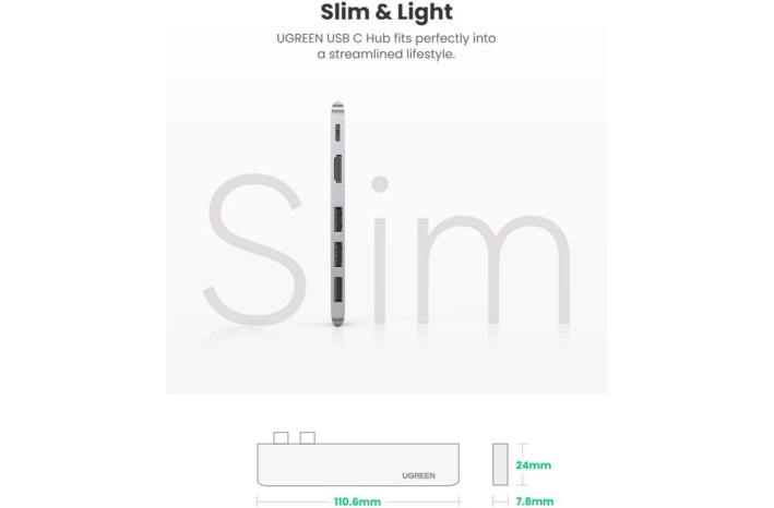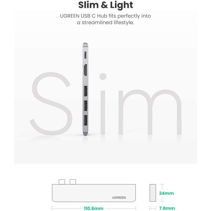 Ugreen Hub: Tip C Thunderbolt 3 prenosni in stilski hub je zasnovan z enim 4k @ 30Hz HDMI vhodom, 3 USB 3.0 vrati in s 100W USB-C PowerDelivery za hitro polnjenje, ki je kot nalašč za MacBook Pro 2018 2017 MacBook Air 2020 2019 2018, itd.