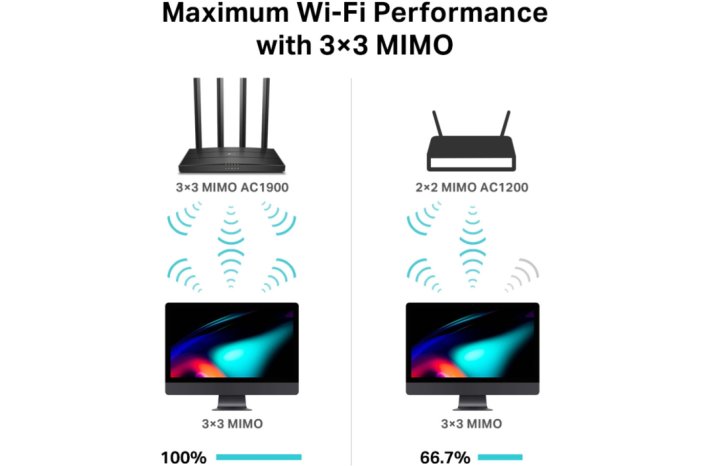 Usmerjevalnik brezžični TP-Link Archer WiFi5 802.11ac AC1900 je zmogljiv usmerjevalnik z dvopasovnim WLAN in hitrostjo prenosa podatkov do 1300 Mbit/s.