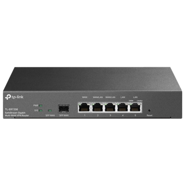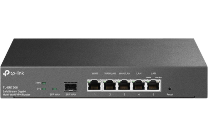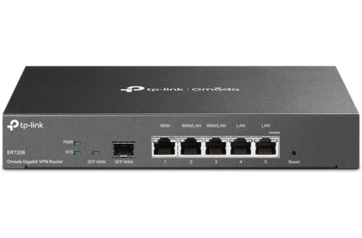TP-LINK SafeStream TL-ER7206 Gigabit Multi-WAN VPN usmerjevalnik router ponuja odlične zmožnosti procesiranja podatkov in različne moćne funkcije vključno z IPsec/PPTP/L2TP VPN, Load Balance, Access Control, DoS Defense, Bandwidth Control, in tako dalje. Usmerjevalnik/ router ima centrilizirano upravljanje v oblaku in inteligentno spremljanje, saj je integriran v Omada SDN (ZTP). Priprava Zero-Touch Provisioning zahteva uporabo krmilnika v oblaku Omada. 1x gigabitni SFP in 5x gigabitni RJ45 priključki zagotavljajo visokohitrostno žično povezljivost.
