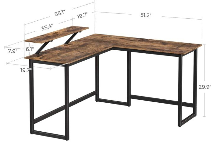 VASAGLE ALINRU Računalniška miza, L-oblikovana kotna miza z monitorjem