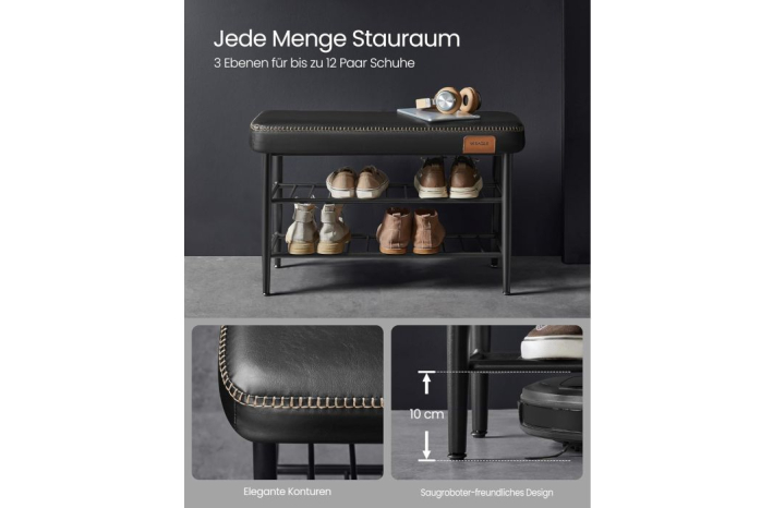 Dodaten prostor za shranjevanje in čiščenje: Spodnja polica je dvignjena 10 cm od tal in ima tri nivoje za shranjevanje čevljev. Dovolj je visoka, da robotizirani sesalnik brez težav ohranja prostor čist in urejen.