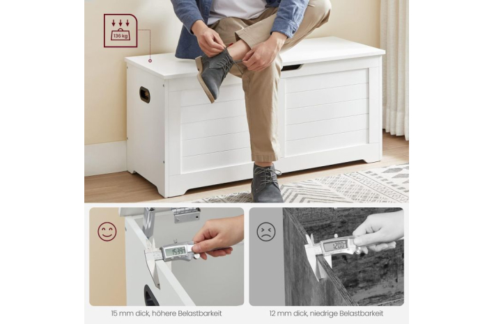 Visoka nosilnost: Površina lahko prenese do 136 kg, notranji predel pa do 60 kg, kar pomeni, da se lahko sproščate na klopi, menjate čevlje in hkrati shranjujete številne predmete v skritem predelu klopi.