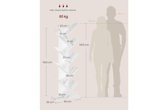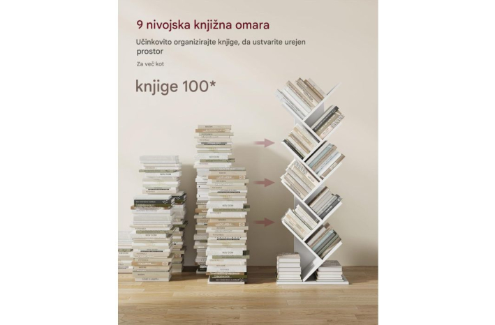 Iščete izviren način za razstavljanje svojih najljubših knjig? Ta moderna knjižna omara z 9 nivoji in značilno obliko drevesa bo v vaš dom vnesla red, toplino in stil.