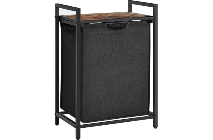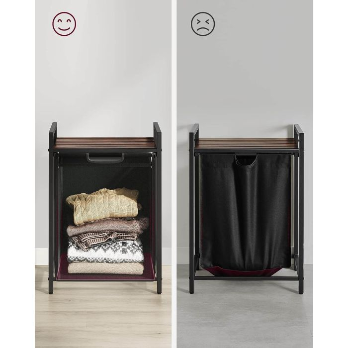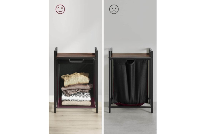 Letvena polica za shranjevanje: ta košara za perilo ima polico, ki zagotavlja dodaten prostor za organiziranje detergentov ali toaletnih potrebščin. Njegova zasnova z letvicami omogoča pretok zraka za dobro prezračevanje in preprečuje nabiranje vonjav v perilu.