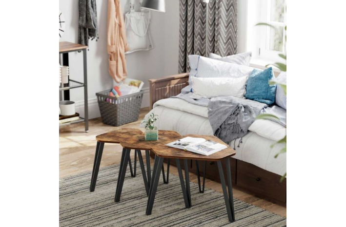 KAJ DOBITE: Komplet 3 različno velikih stranskih mizic iz naše kolekcije ALINRU, pametna oblika gnezdenja, trpežna konstrukcija, enostavna