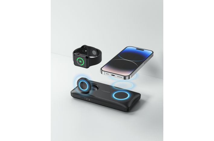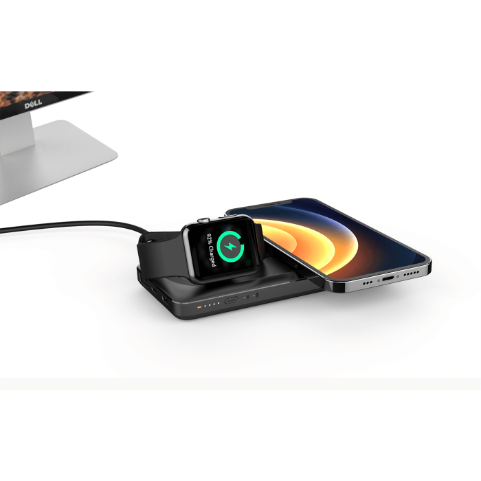 Opremljen z zložljivim polnilnikom iWatch, ki ima vgrajen magnetni modul. Ko se zadnji del ure približa, jo lahko pritrdite in začnete polniti. Polnilnik je nastavljiv med 0-90°, enostavno ga je zložiti kot običajno baterijo za napajanje, prihrani prostor in je enostaven za prenašanje.