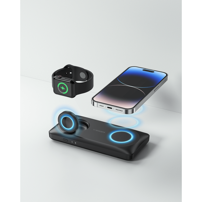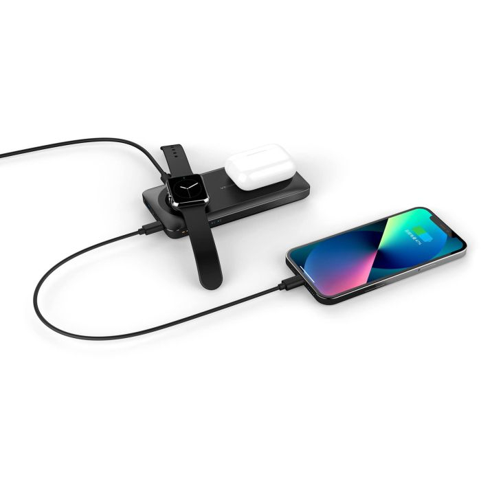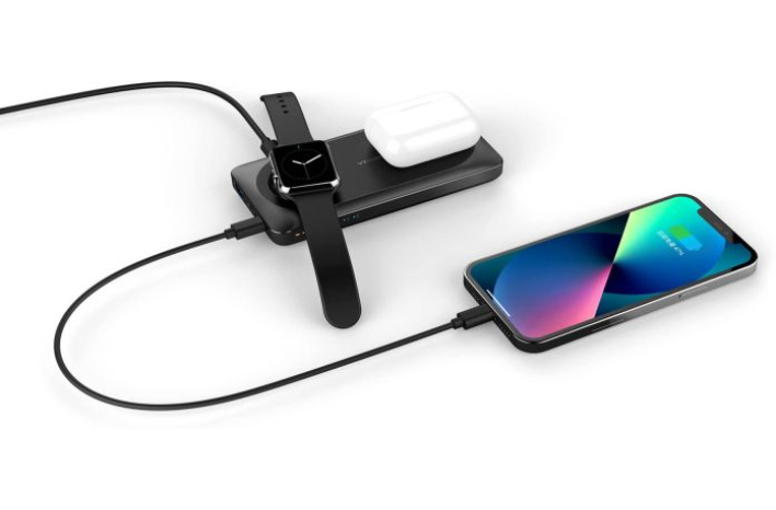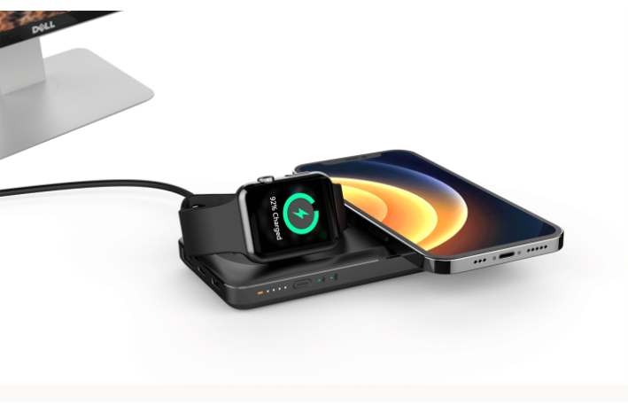 To ni le večnamenska brezžična prenosna baterija 3v1 za serije iPhone 12/13/14, Airpods in AppleWatch, ampak tudi prenosni polnilnik PD20W 10000mAh z osnovno funkcijo prenosne baterije prek vrat USB-A in Type-C.