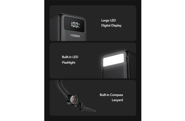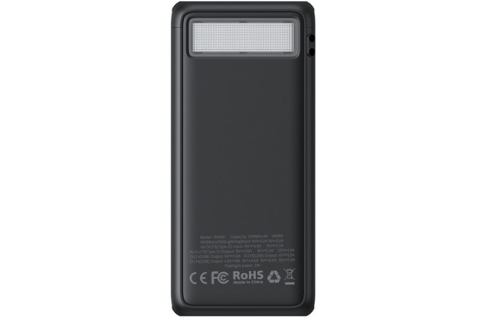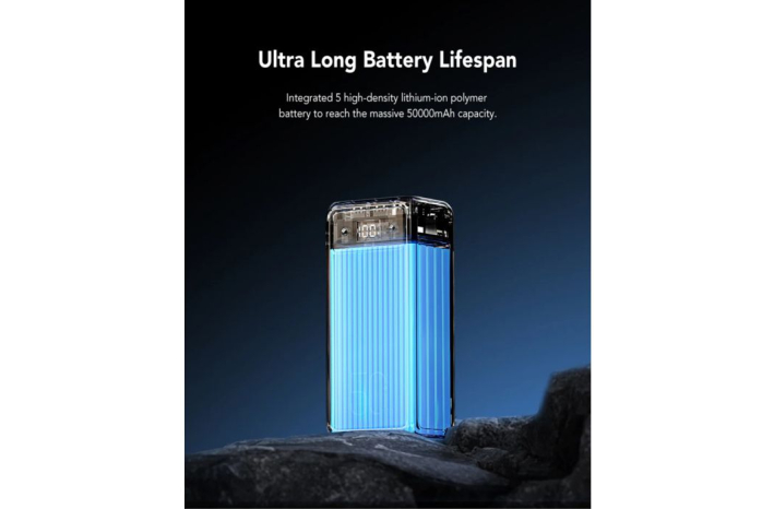 Prenosna baterija, opremljena s 4 izhodnimi in 3 vhodnimi vrati, je z ogromno kapaciteto 50000 mAh združljiva z večino pametnih telefonov, tabličnih računalnikov, slušalk, kamer in drugih naprav na trgu.