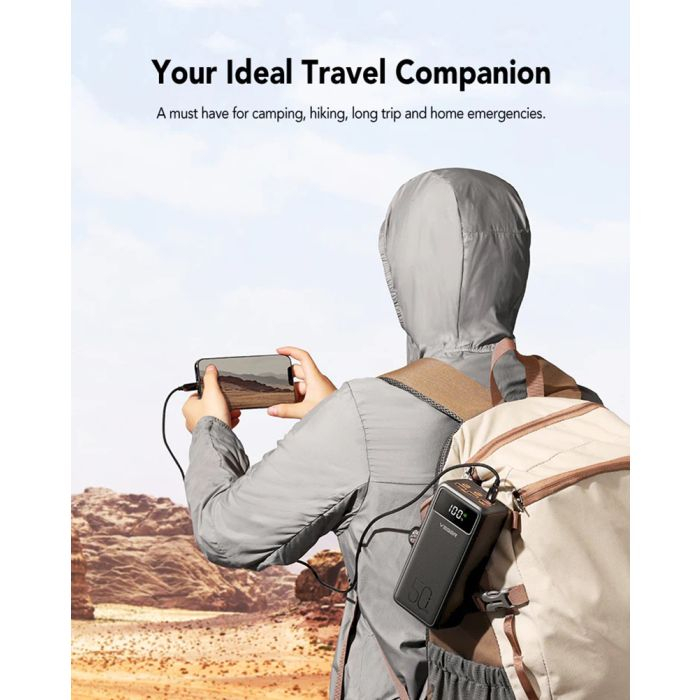 Integrirana litij-ionska polimerna baterija visoke gostote Tank Lite zagotavlja izjemno dolgo življenjsko dobo 50000 mAh, popolno za kampiranje, pohodništvo, dolga potovanja in nujne primere doma.