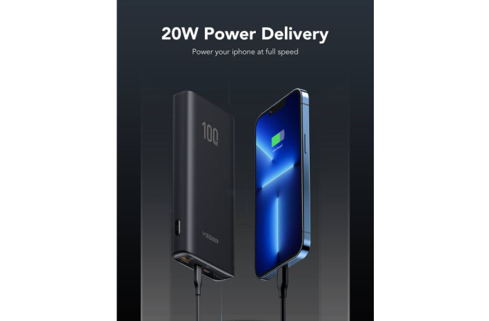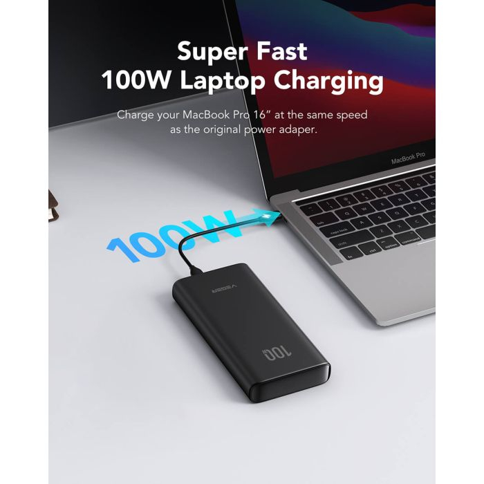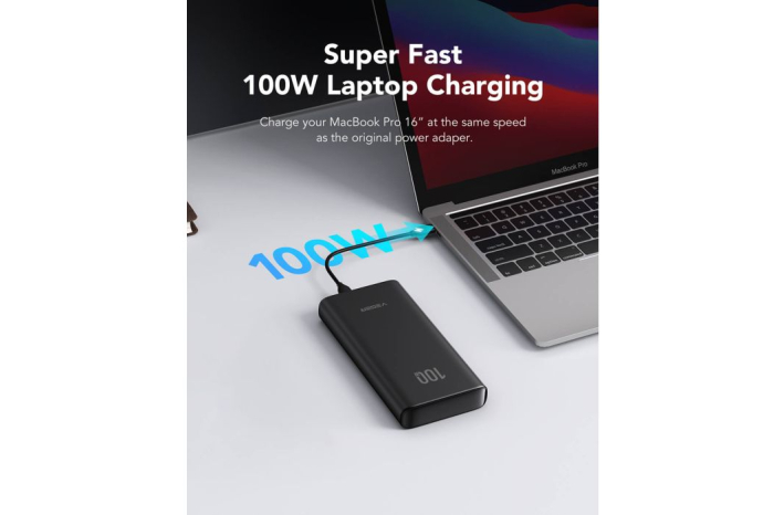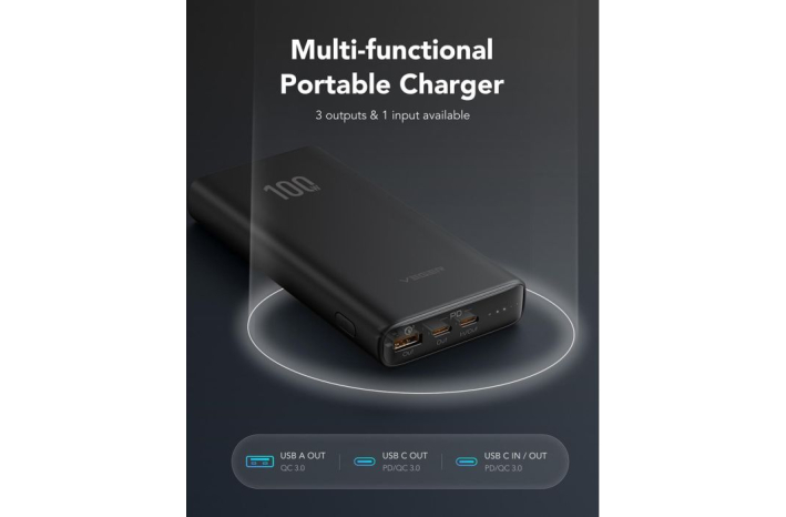 Polnjenje 3 naprav hkrati S 100W USB-C priključkom, 20W USB-C priključkom in 18W QC3.0 priključkom, ta power bank lahko hkrati polni do 3 naprave.