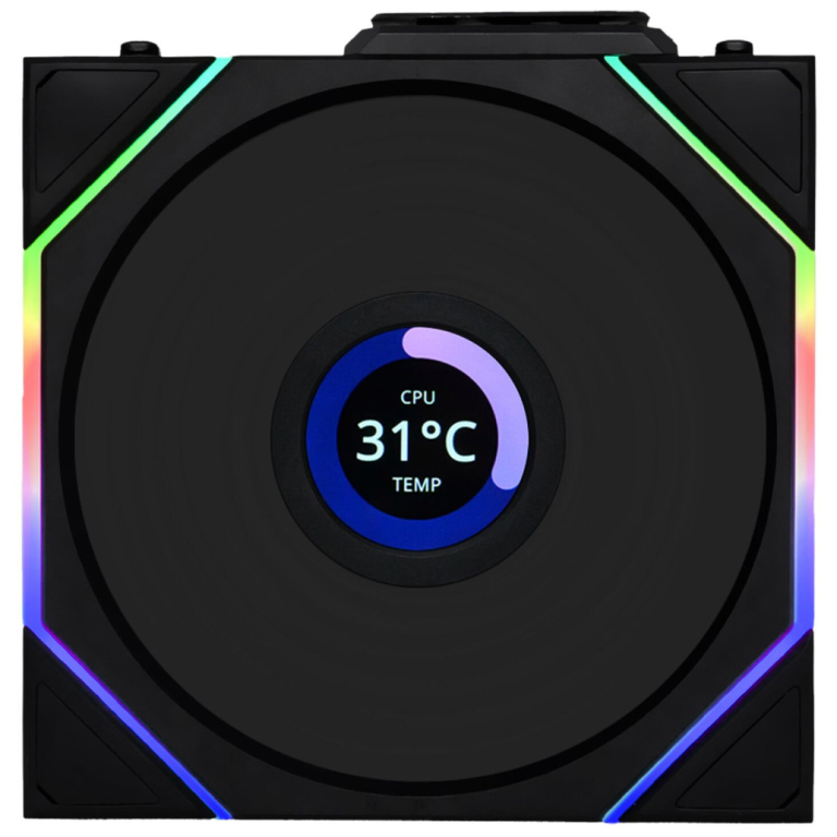 Brezžični LCD UNI FAN TL podjetja Lian Li zagotavlja učinkovito rešitev za upravljanje kablov v vašem računalniku. Z brezžičnim nadzorom 2,4 GHz za svetlobne učinke in hitrost ventilatorja boste potrebovali bistveno manj kablov, kar poenostavlja sestavo vašega sistema. Ventilator ponuja dvopodročne svetlobne učinke, je enostaven za namestitev in ima vgrajen LCD za prikaz sistemskih informacij ali grafike po meri.