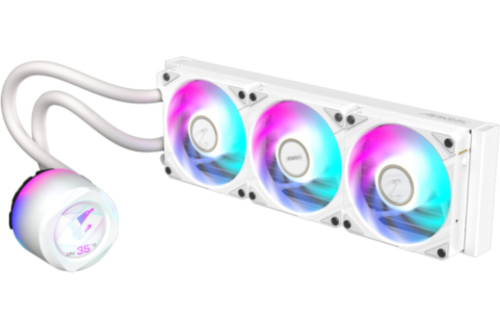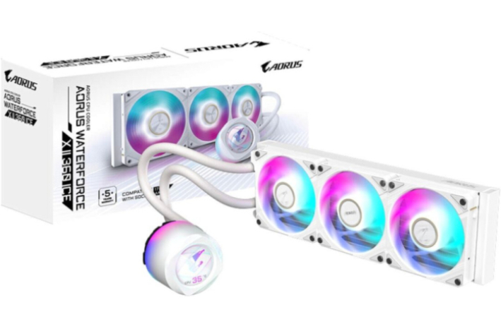 Vodni blok in ventilator imata gradientno osvetlitev, osvetlitev ventilatorja ARGB pa je mogoče sinhronizirati z drugimi napravami AORUS prek GCC (GIGABYTE Control Center)