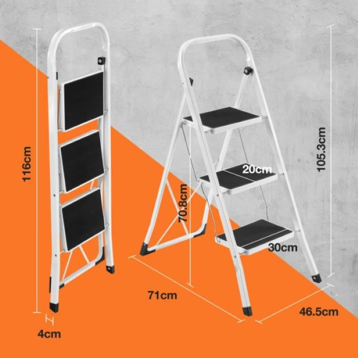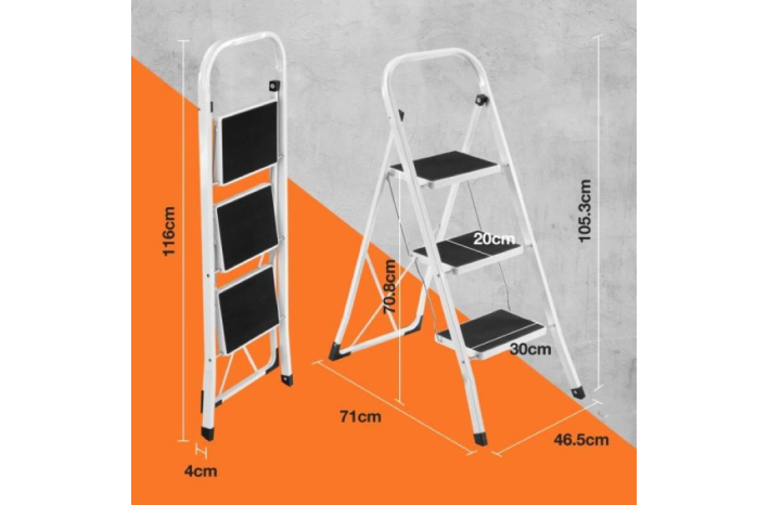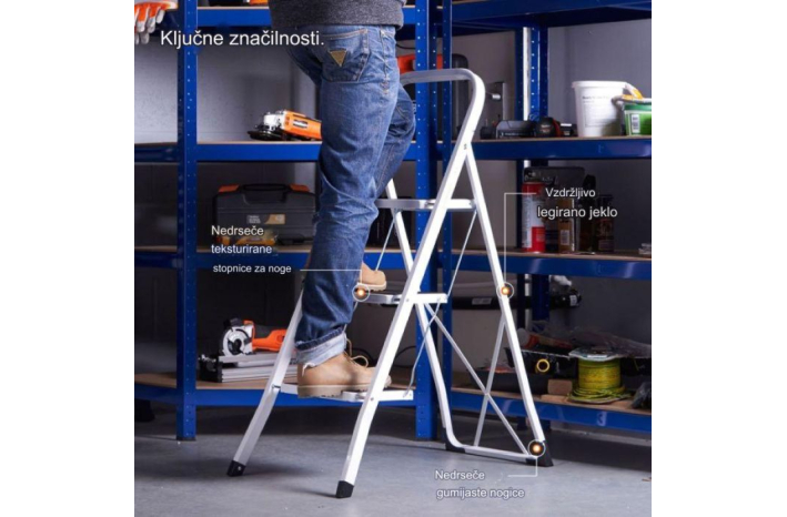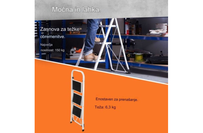 Lahka, prenosna in zanesljiva zložljiva 3-stopenjska lestev VonHaus je kot nalašč za opravljanje opravil za domače mojstre in dekoraterje ter za dostop do težko dostopnih mest.
