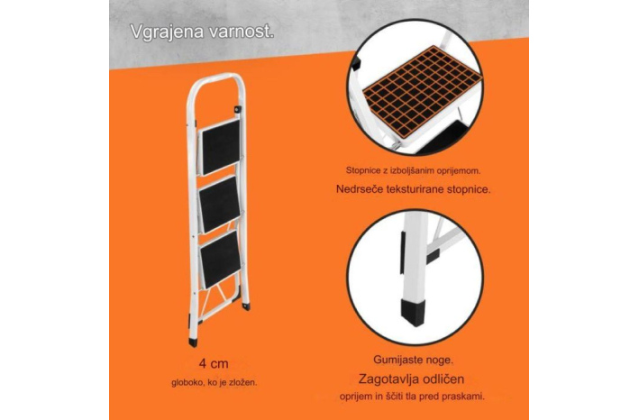 • Z enostavnim zlaganjem lahko lestev zložite do kompaktne velikosti za priročno shranjevanje in prevoz.