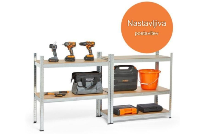 Uporabite naše 5-nivojske regale s pocinkano obdelavo 1,8M, da povečate prostor v prostoru za DIY in lepo organizirate svoje stvari.