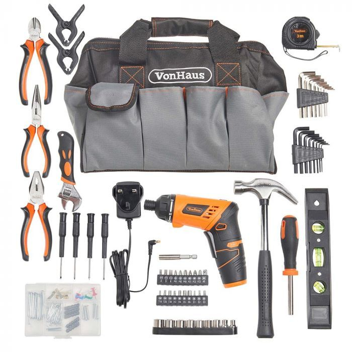 Uradna stran proizvajalca: https://www.vonhaus.com/vh_en/94pc-household-hand-tool-screwdriver-combo-kit * Pridržujemo si pravico do napak na spletni strani tako v slikovnem kot tekstovnem delu in zanje ne prevzemamo odgovornosti.