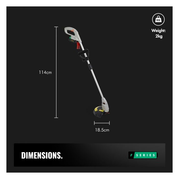 Lahka in majhna akumulatorska kosa za travo VonHaus serije F, je nepogrešljivo vrtno orodje. Poganja ga 12V MAX 2.0Ah litij-ionska baterija in tehta le 2 kg.