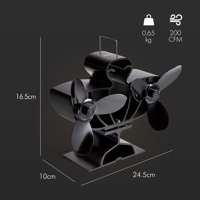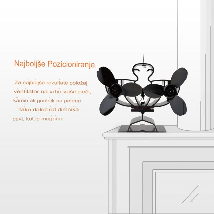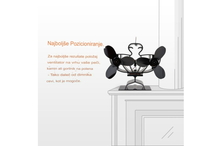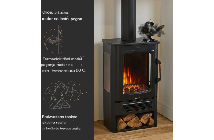 Povečana učinkovitost: S 6 lopaticami, ki hitro krožijo zrak okoli peči, bo vaš prostor hitreje segret, brez dodatne porabe energije ali drv.