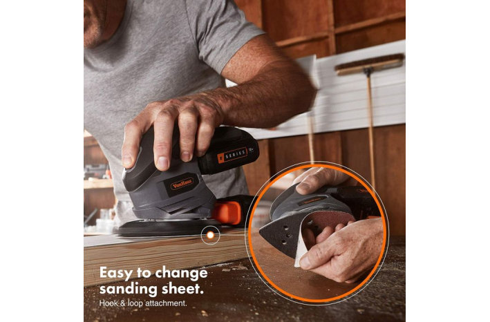 Vibracijski brusilnik VonHaus je priročno orodje za uporabo na lesu, plastiki in kovini. Zaradi svoje majhne, trikotne oblike je idealen pomočnik pri delu na nerodnih mestih. Mehak, gumiran ročaj omogoča trden oprijem in upravljanje.