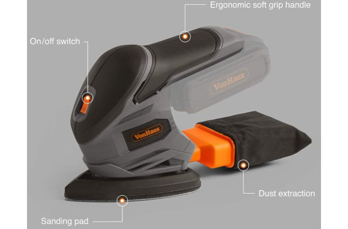 Uradna stran proizvajalca: https://www.vonhaus.com/vh_en/diy/power-tools/sanders/e-series-cordless-sander