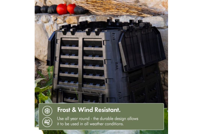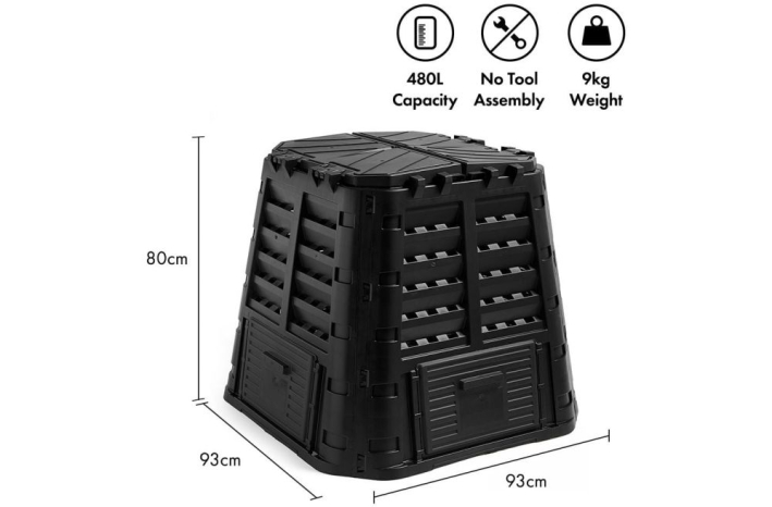 Kompostiranje ne le da zmanjšuje vaš ogljični odtis, ampak tudi koristi vašemu vrtu z obogatitvijo zemlje ter pomaga pri preprečevanju bolezni in škodljivcev rastlin.To je rešitev, ki koristi vam in planetu, z našimi kompostniki pa je to enostavnejše kot kdaj koli prej.S hitrim sestavljanjem, letvasto zasnovo za vgrajeno prezračevanje ter pokrovom za zbiranje deževnice za namakanje, je ta 360-litrski črni kompostnik idealen za zmanjšanje odpadkov. Je odporen proti zmrzali in opremljen z varnimi sidri za tla, kar zagotavlja vzdržljivost in stabilnost v vseh letnih časih.Dimenzije: Višina 80 cm x Širina 93 cm x Globina 93 cm Kapaciteta: 480 L Barva: Črna Teža: 9 kgTa izdelek zahteva samostojno sestavljanje, vendar so naša navodila hitra in enostavna za sledenje.