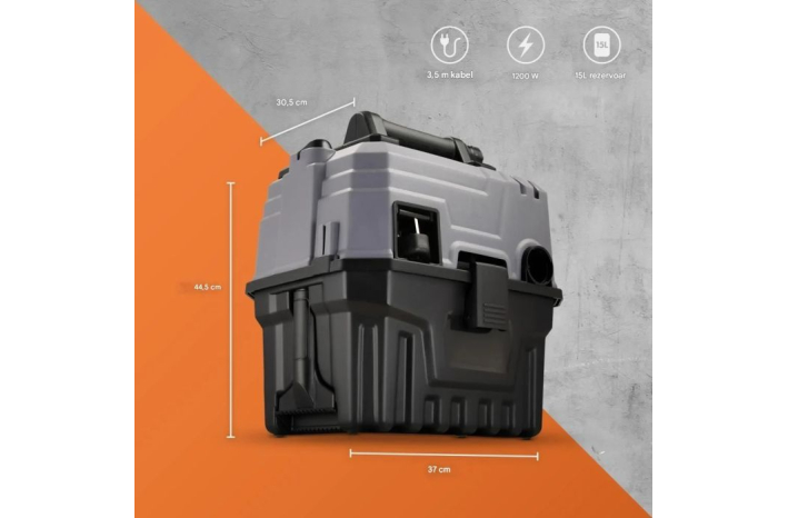 Rešite se razlitih tekočin, gradbenega prahu, listja in še več z večnamenskim VonHaus mokro-suhim sesalnikom. Z zmogljivim 1200 W motorjem in pretokom zraka 32 litrov na sekundo z lahkoto odstranite tekočine, prah, žagovino ali nesnago iz vozil, garaže ali delavnice.