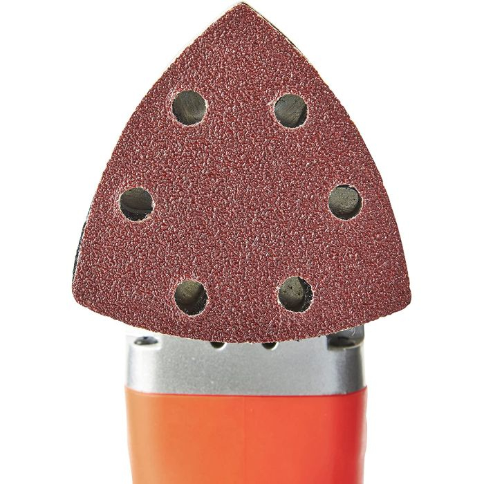 • V kompletu s kovčkom so priloženi številni nastavki in 9 brusnih papirjev zrnatosti 60/120/240 za najrazličnejša dela.
