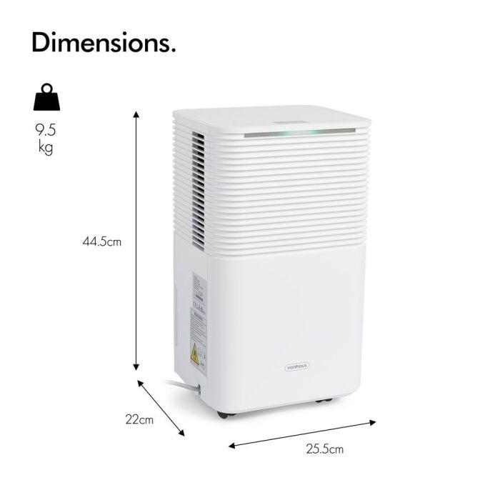 Ko gre za ohranjanje vlage pod nadzorom, je ta 12L razvlaževalnik prava izbira. Sposoben je dnevno odstraniti do 12 litrov vode iz zraka, kar ga naredi popolnega za prostore do 20 m². Torej, če imate težave s kondenzacijo na oknih ali želite preprečiti nastanek plesni, je ta zmogljiv razvlaževalnik več kot kos nalogi.