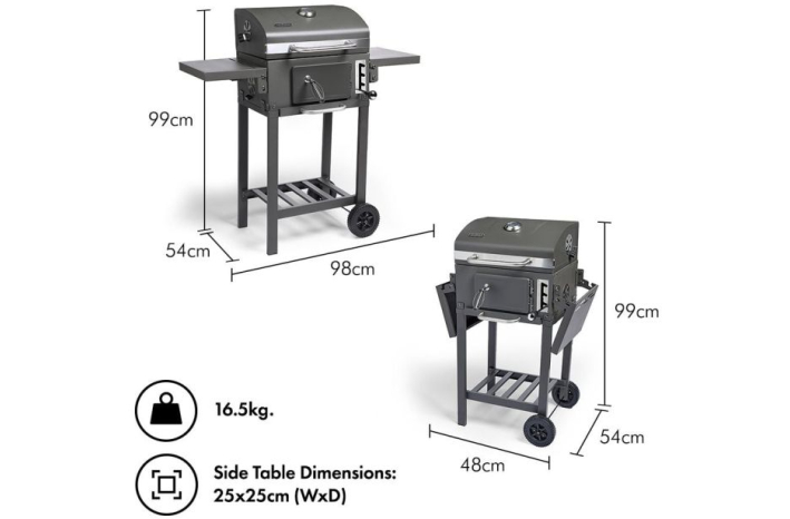 • Žar z nameščenimi stranskimi policami: (V) 104,5 cm x (Š) 101,5 cm x (G) 54 cm