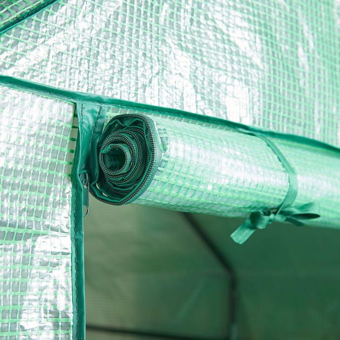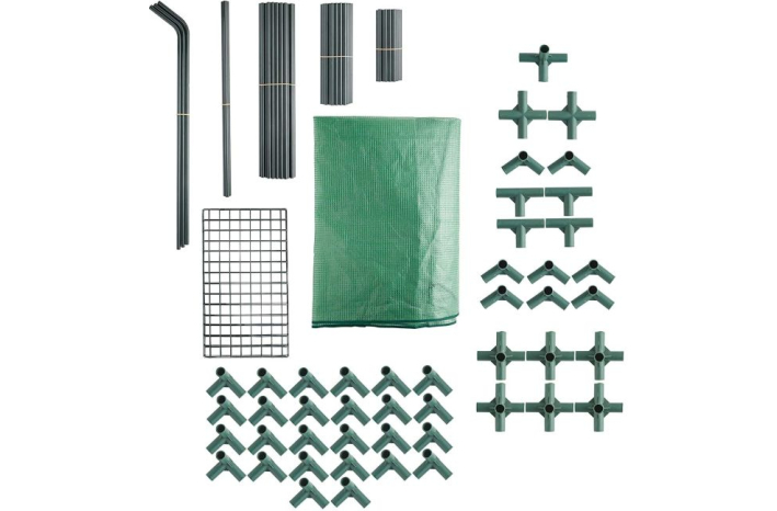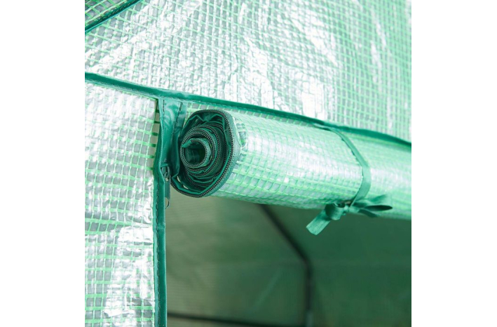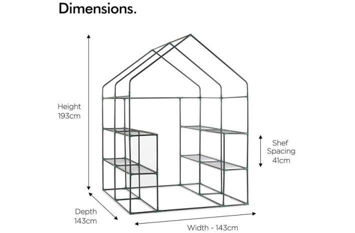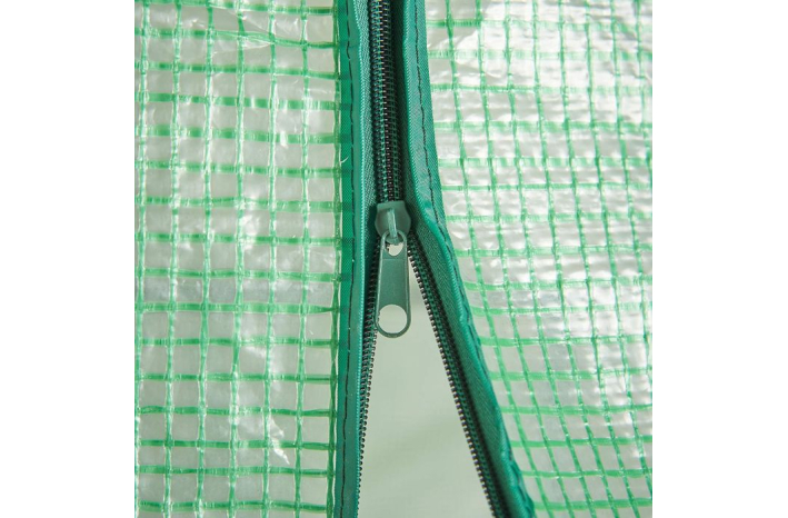 Okvir rastlinjaka je sestavljena iz prašno barvanih kovinskih cevi, ki so med seboj povezane z močno plastiko. Okvir je pokrit z ojačano folijo, vrata z zadrgo pa je mogoče zviti za preprost dostop in ustrezno prezračevanje.