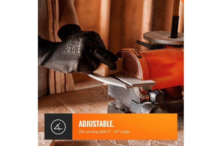• Brusilnik je opremljen z nastavljivo mizo za brušenje, ki se nagne pod kotom 0° - 45° glede na vaše potrebe.