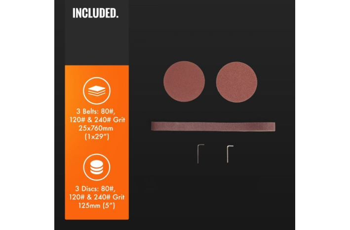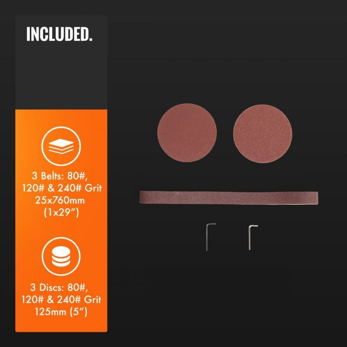 • 3 brusilni trakovi (80#, 120# in 240#) - 25 x 760 mm (1x29")
