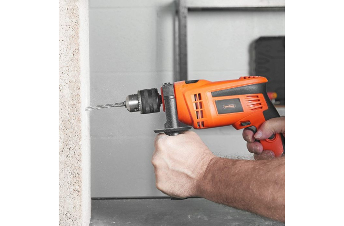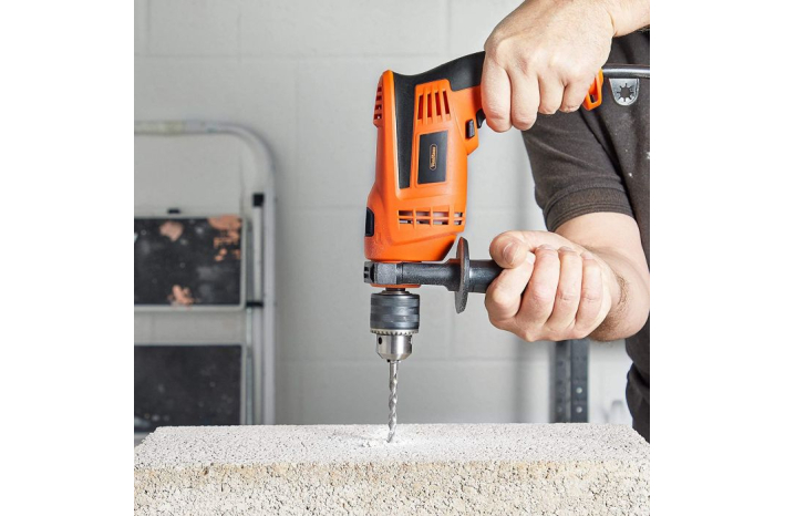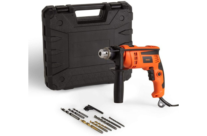 • V kompletu je udarni vrtalnik 710 W, 3 x sveder za kovino: (5 mm, 6 mm in 8 mm). 3 X sveder za beton: (5 mm, 6 mm in 8 mm) 3 X sveder za les: (5 mm, 6 mm in 8 mm) in plastično ohišje