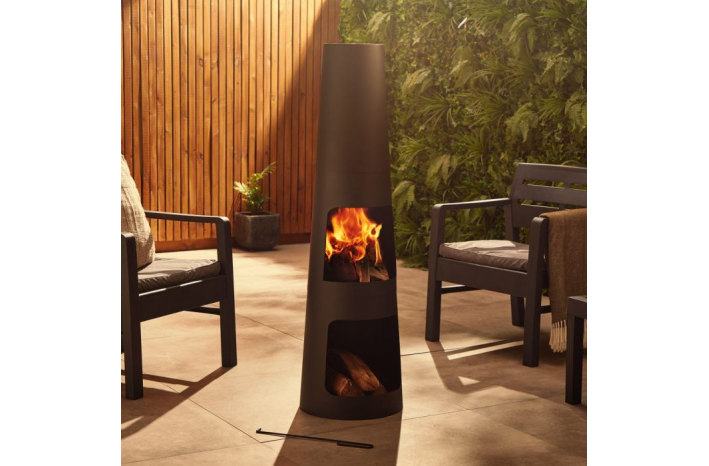 Eleganten mat črni gorilnik za polena je izdelan iz trpežnega jekla, ki zagotavlja dolgo življenjsko dobo, hkrati pa ostaja prenosen in kompakten, da se prilega v velike ali majhne vrtove.