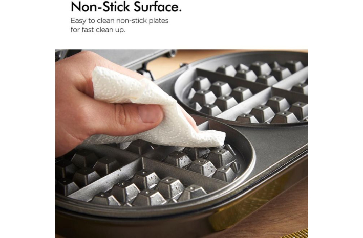 • Plošče so premazane s prevleko proti prijemanju - za enostavno čiščenje in popolno oblikovane vaflje.