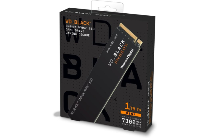 WD Black SN850X (model WDS100T2X0E) je M.2 2280 NVMe SSD z zmogljivostjo 1 TB, optimiziran za najzahtevnejše igre, ustvarjanje vsebin in računske obremenitve. Ponuja izjemne sekvenčne hitrosti branja (do 7 300 MB/s) in pisanja (do 6 600 MB/s) prek PCIe Gen4×4, naključne IOPS zmogljivosti do 1 000 000, aktivno hlajenje preko opcijskega hladilnika in izboljšano vzdržljivost. SSD je združljiv s PCIe Gen3 in je podprt z WD Black Dashboard za optimizacijo delovanja.