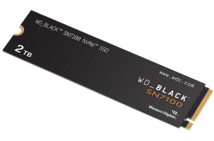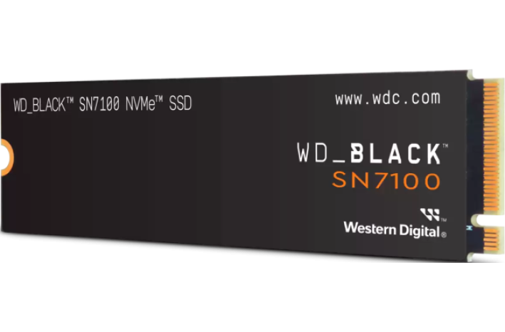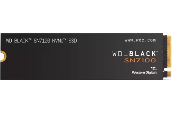 WD Black SN7100 (WDS200T4X0E) je zmogljiv 2 TB NVMe SSD v formatu M.2 2280 z naprednim PCIe Gen4×4 vmesnikom. Ponuja sekvenčne hitrosti branja do 7 250 MB/s in pisanja do 6 900 MB/s. Uporablja 3D TLC NAND in WD-jev lastni brezpredpomnilniški kontroler ter nCache 3.0 predpomnilnik. Namenjen je zmogljivemu igranju, prenosnim računalnikom in profesionalni uporabi ter podpira WD SSD Dashboard.