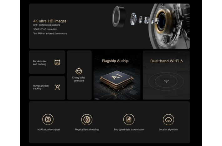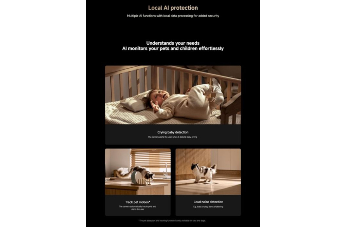 Xiaomi Smart Camera C700 podpira lokalno AI obdelavo za zaznavanje gibanja ljudi in hišnih ljubljenčkov ter prepoznavanje joka dojenčka ali drugih glasnih zvokov. Funkcija sledenja zagotavlja, da kamera samodejno sledi gibanju, kar poveča učinkovitost varnostnega sistema. S kamero je možna tudi dvosmerna glasovna komunikacija – z gesto "OK" lahko vzpostavite klic, če pa se ta ne sprejme, sistem pošlje glasovno obvestilo.