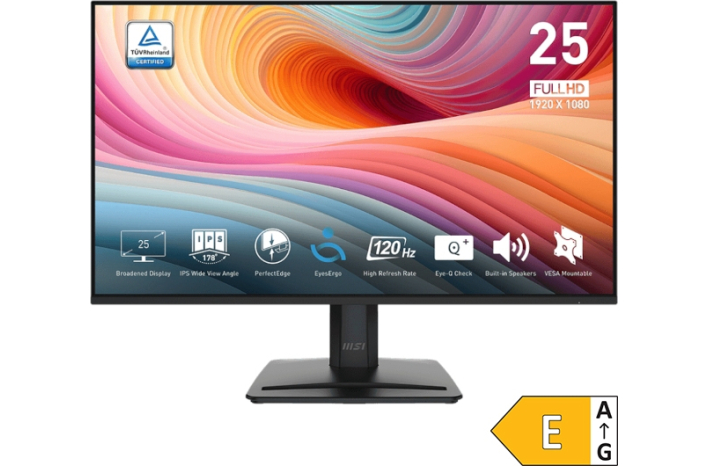 MSI PRO MP251 E2 je 24,5-palčni poslovni monitor, zasnovan za vsakodnevno uporabo v pisarni ali doma. Ponuja jasen Full HD prikaz, široke kote gledanja in tehnologije za zaščito oči, ki zmanjšujejo utrujenost pri dolgotrajnem delu. Elegantna oblika se popolnoma prilega modernemu delovnemu okolju.