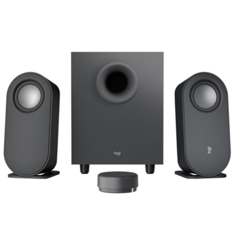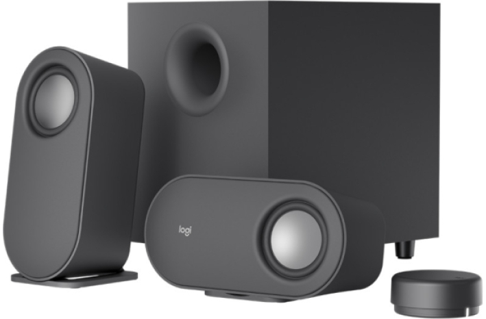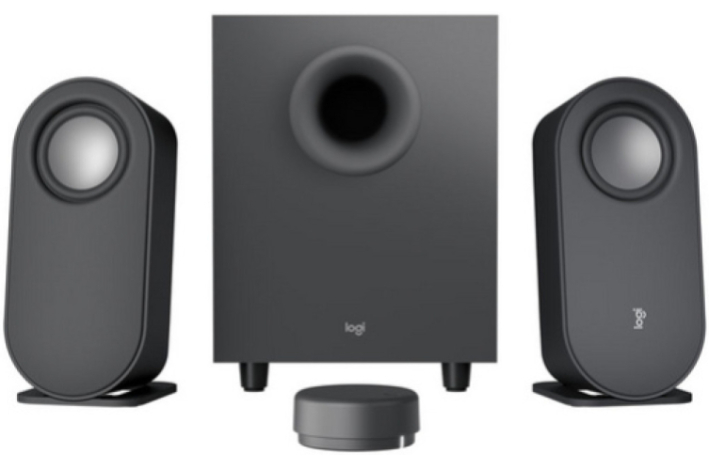 Strokovno nastavljen sistem zvočnikov 2.1 ima največjo moč 80 vatov in 40 vatov RMS. Digitalna obdelava signalov zagotavlja uravnotežen zvočni profil in izboljšane nizke tone za pristen zvok, ki napolni prostor – od kristalno čistih visokih tonov do močnih srednjih nizkih tonov – brez ogrožanja bogatih, globokih nizkih tonov.
