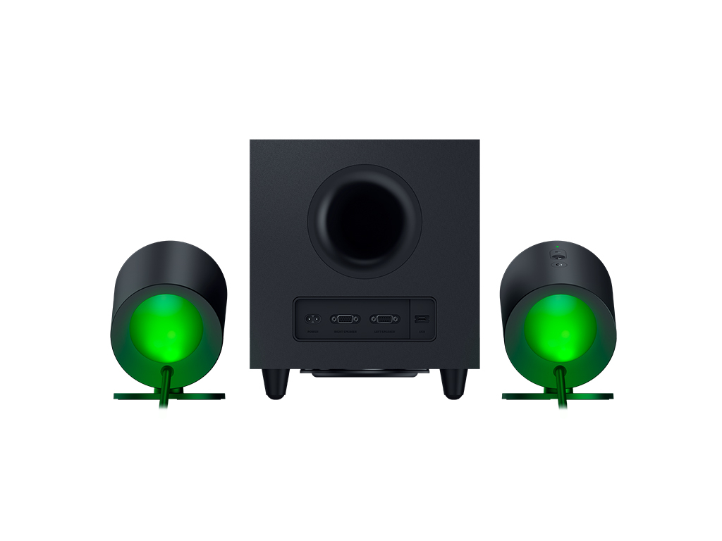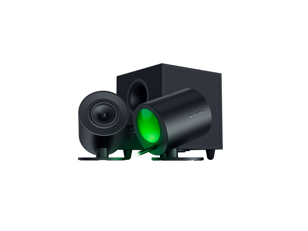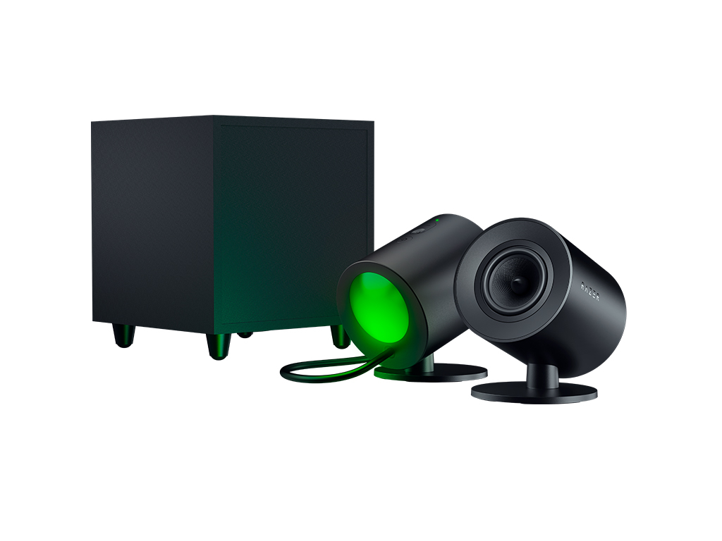 Nastavite zvočno kuliso za zmago z Razer Nommo V2 — igralnim sistemom zvočnikov, zasnovanim za zvok, ki napolni prostor. S tehnologijo THX® Spatial Audio in Razer Chroma™ RGB se pripravite na izjemno izkušnjo, ki zajema sliko in zvok.